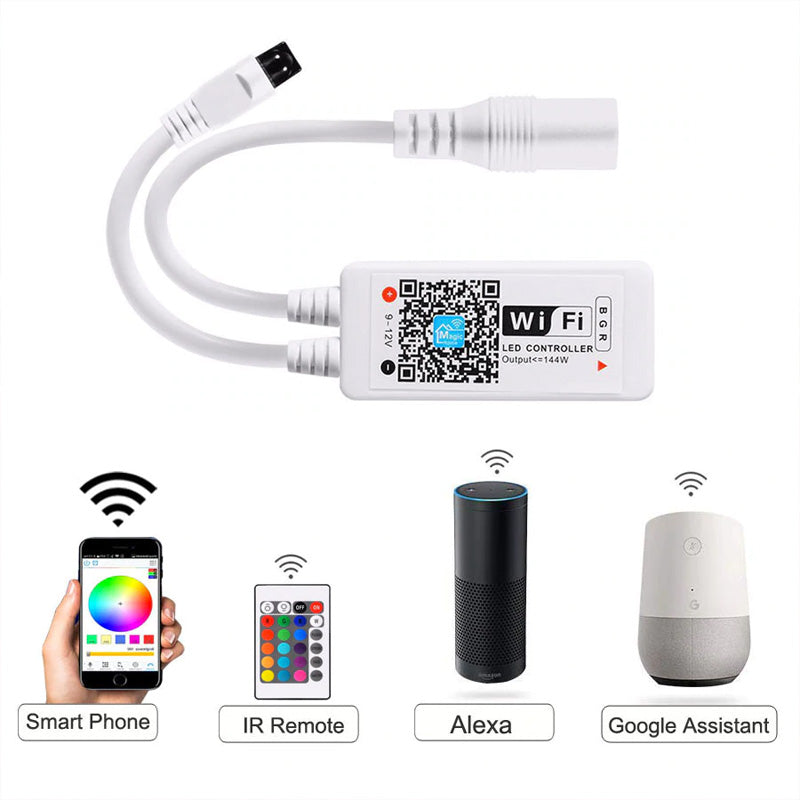 MUSIC & WIFI WIRELESS CONTROLLER: Take complete control of your lighting with Magic home Pro APP; Create romance, relaxation, party ambiance with Music and Mic function; Remote control allows you turn on/off the led strip lights from anywhere; Timer function of the Wifi controller make you wake up at your favorite color, keep you on Schedule